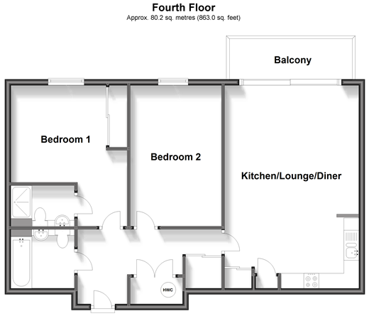 A stunning fourth-floor apartment situated in Ashford town centre. With its excellent location and stunning views of Victoria Park, this property is sure to impress. The flat boasts a contemporary and stylish design, with high-quality fixtures and fittings throughout and has access to a roof top terrace. The open-plan living area is flooded with natural light and offers ample space for both relaxing and entertaining. The fully fitted kitchen includes all modern appliances and plenty of storage space, while the bedrooms are generously sized and provide plenty of room for furniture. An en-suite shower room to bedroom one and a utility cupboard are a bonus too. This property is perfect for commuters, with excellent transport links to London and other nearby towns. Ashford International train station is just a short walk away, providing fast and frequent services to London and beyond. An allocated parking space outside means you're sure to come home without fighting for parking. And the rooftop garden is an excellent outdoors space with far-reaching views too! With its ideal location, stunning views, and modern amenities, this is the perfect property for anyone looking for a comfortable and convenient lifestyle. Room sizes:HallwayBathroomBedroom 1: 15'4 (4.68m) narrowing to 10'7 (3.23m) x 12'8 (3.86m)En-Suite Shower RoomBedroom 2: 15'5 x 10'1 (4.70m x 3.08m)Kitchen/Lounge/Diner: 22'3 x 14'7 (6.79m x 4.45m)BalconyAllocated Parking Space