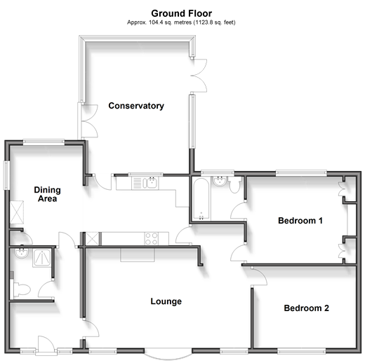 Please refer to the footnote regarding the services and appliances. Room sizes:Entrance HallwayShower RoomDining Area: 12'4 x 8'3 (3.76m x 2.52m)Kitchen: 13'5 x 8'4 (4.09m x 2.54m)Conservatory: 16'1 x 12'4 (4.91m x 3.76m)Bedroom 1: 13'4 x 10'6 (4.07m x 3.20m)En Suite BathroomBedroom 2: 10'7 x 9'9 (3.23m x 2.97m)Lounge: 20'0 x 11'9 (6.10m x 3.58m)DrivewayRear GardenSummer House