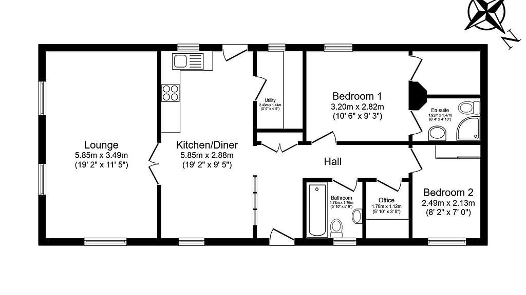 Inside, the park home boasts a spacious lounge, perfect for relaxing or entertaining guests. The kitchen has a separate utility room and opens out to a dining room, creating a great flow for daily living and mealtimes. The master bedroom features an ensuite shower room and a walk-in wardrobe, providing ample storage and convenience. A second bedroom, study and a well-appointed family bathroom complete the internal accommodation.