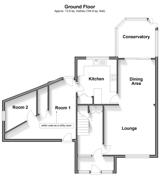 Please refer to the footnote regarding the services and appliances. Room sizes:Entrance PorchEntrance HallLounge: 12'6 x 12'2 (3.81m x 3.71m)Dining Area: 10'1 x 9'1 (3.08m x 2.77m)ConservatoryKitchen: 10'1 x 9'5 (3.08m x 2.87m)Room 1Room 2Bedroom 1: 11'1 x 10'9 (3.38m x 3.28m)Bedroom 2: 10'9 x 8'6 (3.28m x 2.59m)Separate W.C.Bathroom: 5'4 x 4'8 (1.63m x 1.42m)Loft Room & EavesDrivewayFront GardenRear Garden