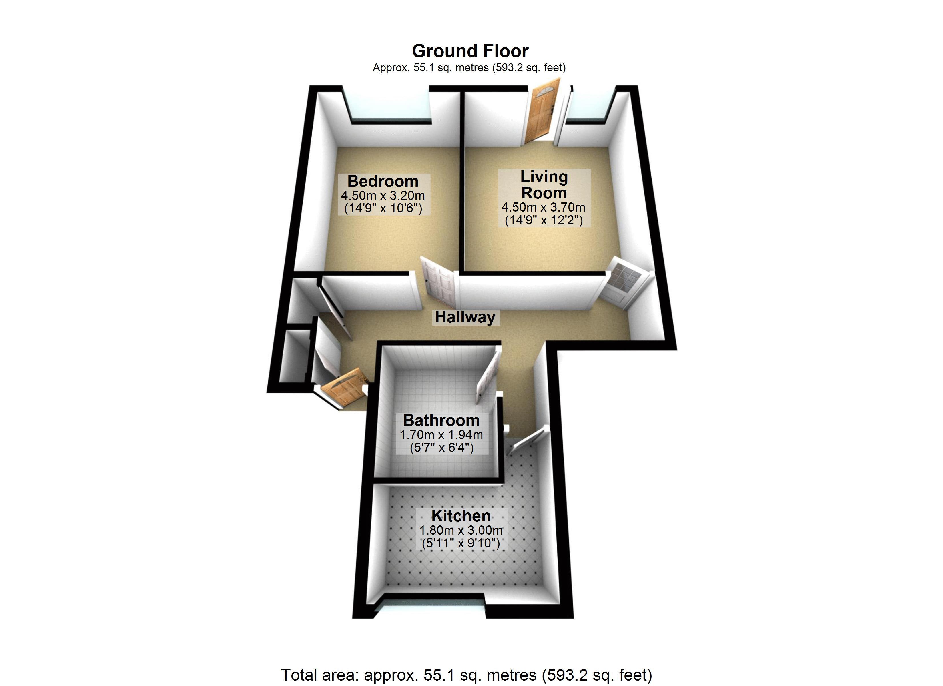 Double glazed window to front and radiator. Matching wall and base units with worktop over and sink. Built in oven and hob with extractor over. Built in fridge freezer.