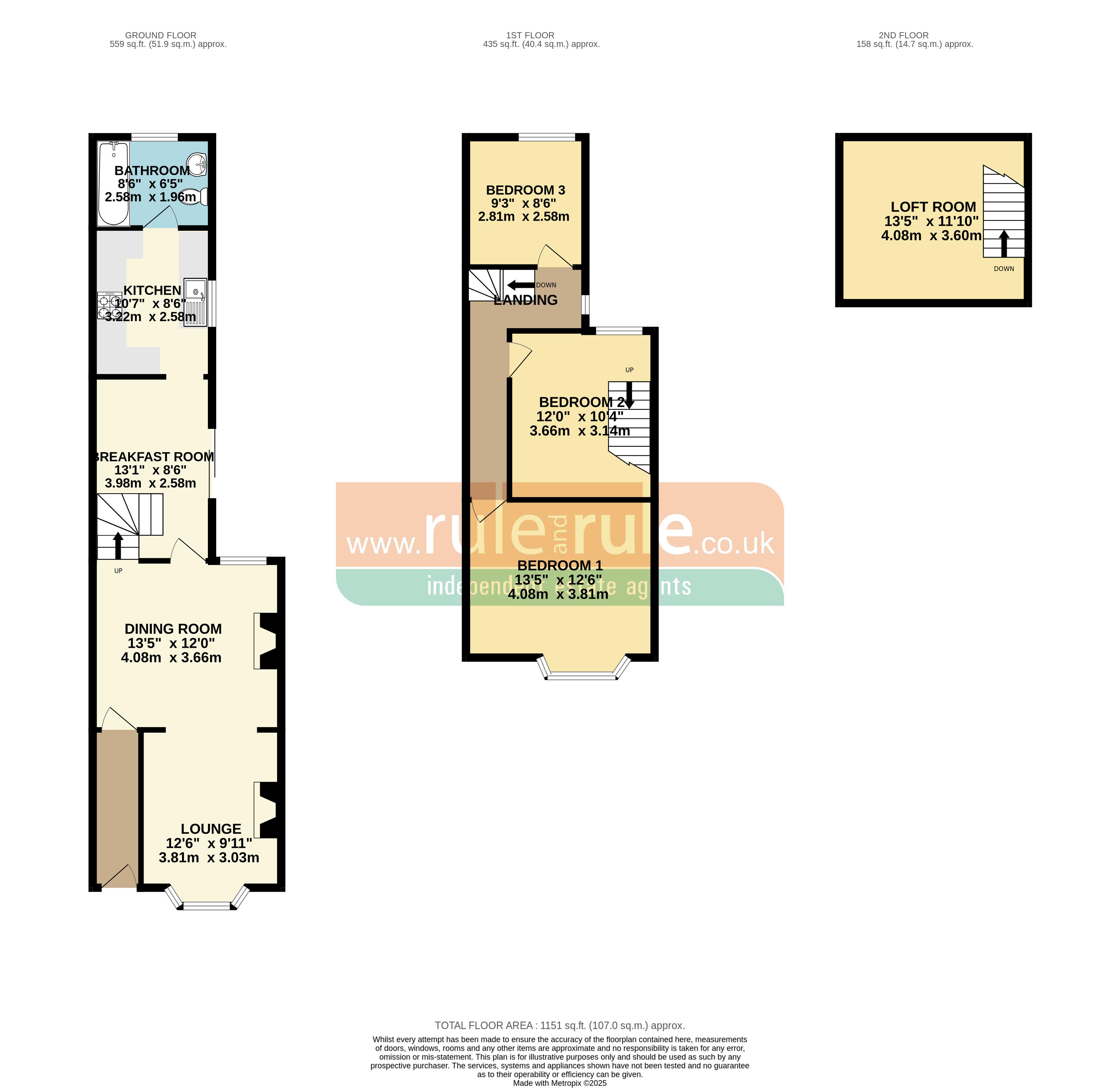 This ever so spacious property is centrally heated and double glazed with the accommodation providing three good sized bedrooms and a useful loft room accessed from the 2nd bedroom. To the ground floor there's a separate lounge and dining room, an additional breakfast room leading to a cream coloured fitted kitchen and a white bathroom suite.