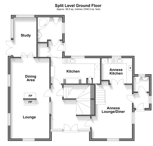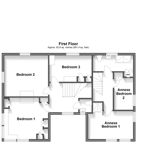 Room sizes:Entrance HallLounge: 11'6 x 11'3 (3.51m x 3.43m)Dining Area: 11'8 x 11'6 (3.56m x 3.51m)Study: 12'2 x 6'11 (3.71m x 2.11m)BathroomKitchen: 14'3 x 7'5 (4.35m x 2.26m)Annexe PorchAnnexe Lounge/Diner: 15'7 x 11'9 (4.75m x 3.58m)Annexe Kitchen: 9'1 x 7'5 (2.77m x 2.26m)Annexe CloakroomBASEMENTCellarFIRST FLOORBedroom 1: 13'6 x 12'4 (4.12m x 3.76m)Bedroom 2: 12'5 x 12'5 (3.79m x 3.79m)Bedroom 3: 12'6 x 8'2 (3.81m x 2.49m)Separate ToiletAnnexe Bedroom 1: 13'6 x 9'5 (4.12m x 2.87m)Annexe Bedroom 2: 9'1 x 5'7 (2.77m x 1.70m)Shower RoomOUTBUILDINGDouble Garage: 18'2 x 15'7 (5.54m x 4.75m)WorkshopOUTSIDERear GardenDrivewayRear Driveway