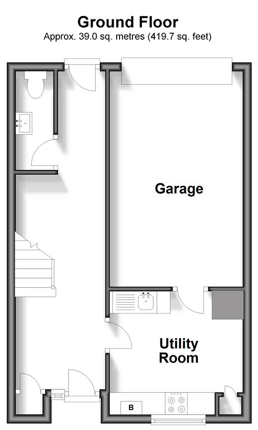 Please refer to the footnote regarding the services and appliances. Room sizes:Entrance HallCloakroomUtility Room: 9'8 x 9'5 (2.95m x 2.87m)LandingLounge/Dining Area: 23'9 x 10'1 (7.24m x 3.08m)Kitchen: 8'10 x 7'6 (2.69m x 2.29m)LandingBedroom 1: 13'5 x 10'4 (4.09m x 3.15m)Bedroom 2: 11'7 x 10'5 (3.53m x 3.18m)Bedroom 3: 8'1 x 6'5 (2.47m x 1.96m)Bathroom: 8'2 x 6'4 (2.49m x 1.93m)GarageCar PortFront GardenRear Garden