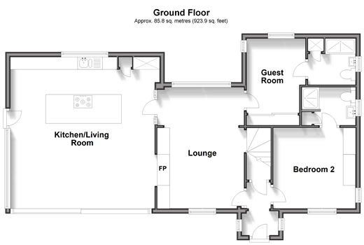 Room sizes:PorchHallLounge: 15'8 x 11'7 (4.78m x 3.53m)Kitchen/Living Room: 19'1 x 18'10 (5.82m x 5.74m)Bedroom 2: 10'11 x 10'9 (3.33m x 3.28m)En Suite Shower RoomGuest Bedroom: 11'1 x 7'9 (3.38m x 2.36m)En Suite Shower RoomFIRST FLOORLandingBedroom 1: 11'7 x 10'9 (3.53m x 3.28m)Bathroom: 10'11 x 10'9 (3.33m x 3.28m)OUTSIDEWraparound GardenCabinSummerhouseDriveway
