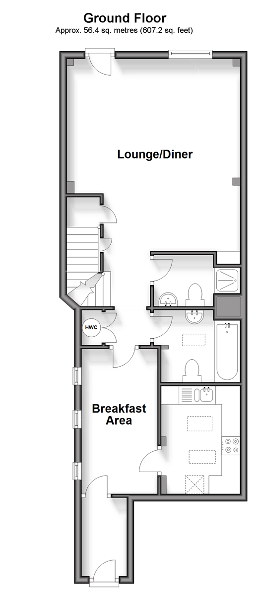 Please refer to the footnote regarding the services and appliances. Room sizes:Entrance HallwayBreakfast Area: 12'9 x 6'7 (3.89m x 2.01m)Kitchen: 9'1 x 7'0 (2.77m x 2.14m)BathroomShower Room: 8'6 x 4'5 (2.59m x 1.35m)Lounge/Diner: 17'1 x 15'3 (5.21m x 4.65m)LandingBedroom 1: 12'0 x 9'7 (3.66m x 2.92m)Bedroom 2: 12'6 x 7'8 (3.81m x 2.34m)Bedroom 3: 12'2 x 7'7 (3.71m x 2.31m)