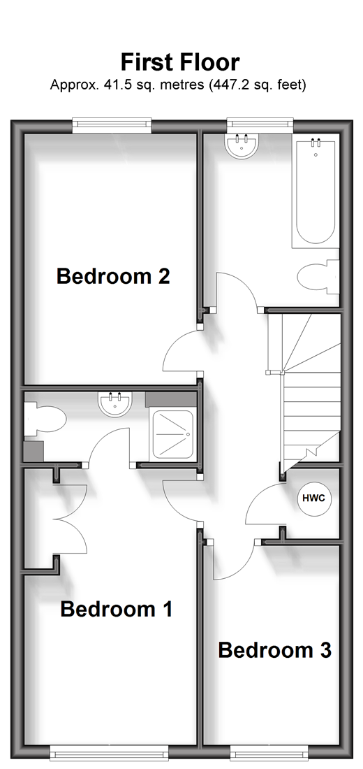 Please refer to the footnote regarding the services and appliances. Room sizes:HallwayCloakroomKitchen: 10'4 x 8'3 (3.15m x 2.52m)Lounge: 15'2 at widest point x 15'0 at widest point (4.63m x 4.58m)LandingBedroom 1: 13'0 x 8'6 (3.97m x 2.59m)En-Suite Shower RoomBedroom 2: 12'1 x 8'6 (3.69m x 2.59m)BathroomBedroom 3: 9'5 x 6'3 (2.87m x 1.91m)Front GardenRear Garden