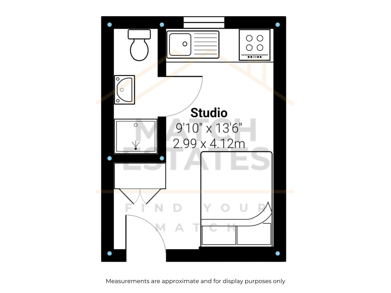 The studio features a living/bedroom area complete with a modern fitted kitchen. The property comes part furnished, ideal for a tenant who needs to move quickly.