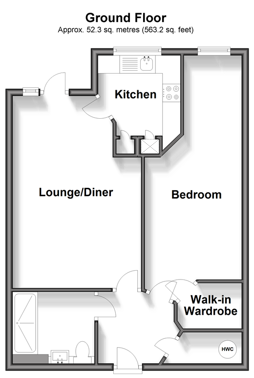Please refer to the footnote regarding the services and appliances. Room sizes:Entrance HallBedroom: 23'9 x 8'9 (7.24m x 2.67m)Walk-in-WardrobeShower RoomLounge/Diner: 17'5 x 11'7 (5.31m x 3.53m)Kitchen: 9'0 x 7'4 (2.75m x 2.24m)Communal GardenCommunal Parking