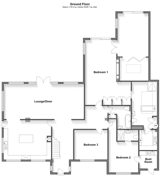 You approach this property by a gravelled in and out driveway through electric gates, there is ample parking on the private driveway. You are greeted with a large reception hall opening to the downstairs living accommodation. The immaculate fitted kitchen with island and breakfast area leads to the lounge diner at the rear of the property which flows really nicely. There are three double bedrooms downstairs, along with three bathrooms. The main has additional storage and dressing area, with direct access to patio area in the garden. On the first floor there are two further bedrooms, en-suite and dressing room. The garden provides an abundance of space including patio area, lawn and lake area. Perfect for hosting the whole family. Viewing advised to appreciate the size and work that has been put into this property by the current owners. Room sizes:Entrance HallKitchen: 17'9 x 15'4 (5.41m x 4.68m)Lounge/Diner: 30'7 x 13'2 (9.33m x 4.02m)Bedroom 1: 22'7 x 17'3 (6.89m x 5.26m)En-suite: 18'6 x 10'10 (5.64m x 3.30m)Utility: 7'6 x 6'5 (2.29m x 1.96m)Bedroom 2: 11'3 x 11'1 (3.43m x 3.38m)En-suite: 9'3 x 5'7 (2.82m x 1.70m)Boot RoomBedroom 3: 12'9 x 11'3 (3.89m x 3.43m)Bathroom: 8'4 x 8'2 (2.54m x 2.49m)LandingBedroom 4: 15'5 x 9'5 (4.70m x 2.87m)Bedroom 5: 16'6 x 16'3 (5.03m x 4.96m)En-suite: 7'9 x 3'9 (2.36m x 1.14m)Dressing Room: 9'2 x 6'8 (2.80m x 2.03m)Garage: 27'6 x 18'3 (8.39m x 5.57m)Large DrivewayLarge Rear Garden with patio
