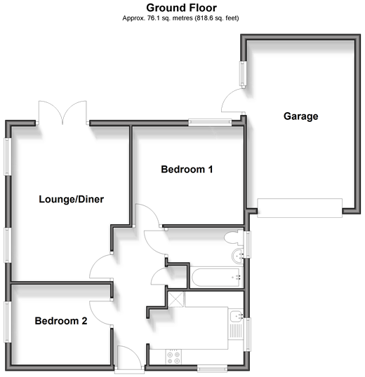 Well presented throughout with plenty of privacy and both centrally heated and double glazed. Goodsize bedrooms and a large garage with additional storage. Room sizes:Entrance HallwayBedroom 2: 11'8 x 10'2 (3.56m x 3.10m)Lounge/Diner: 17'3 x 16'5 (5.26m x 5.01m)Bedroom 1: 13'8 x 11'9 (4.17m x 3.58m)BathroomKitchen: 9'6 x 7'8 (2.90m x 2.34m)GarageDrivewayFront GardenRear Garden