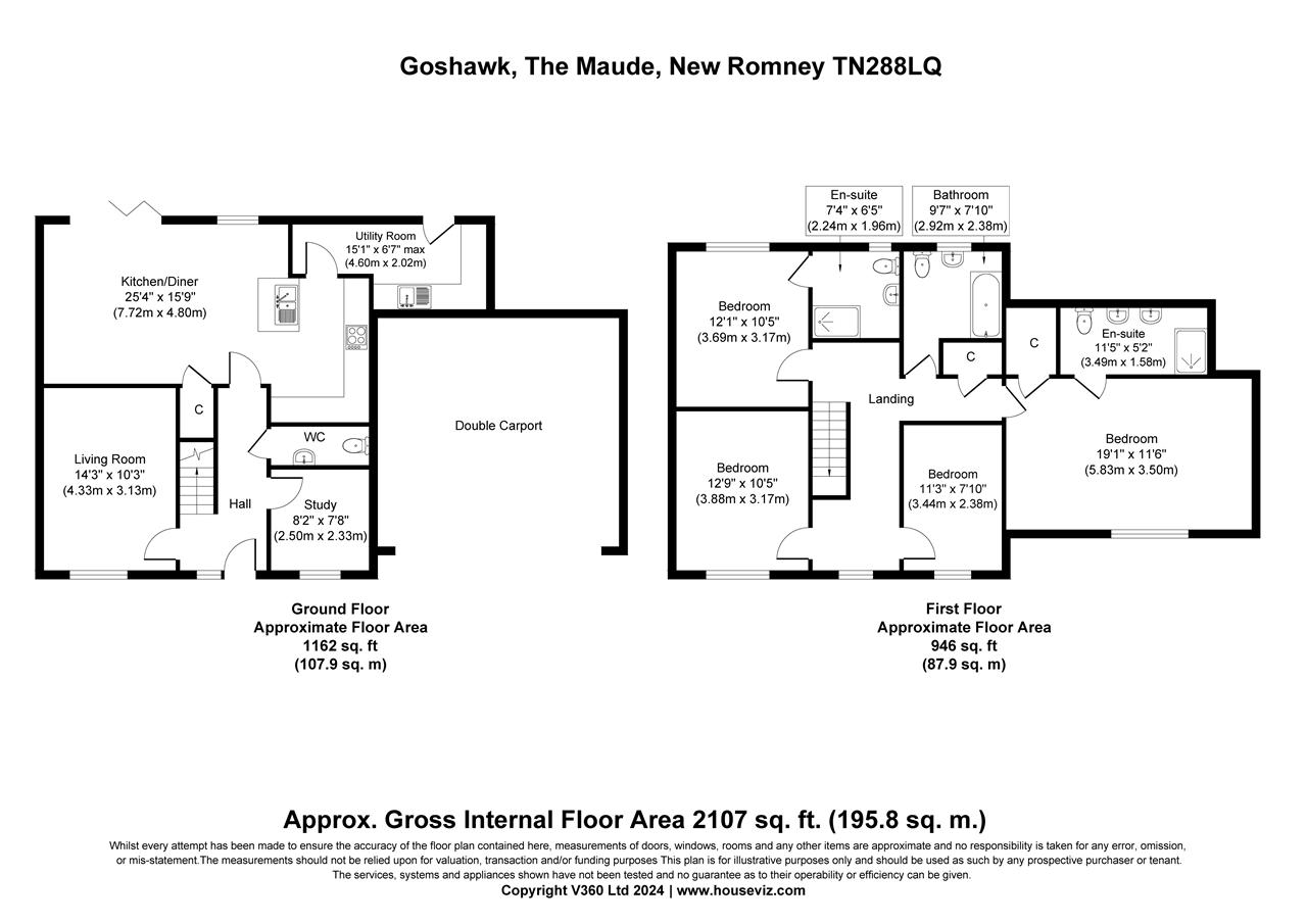 On the first floor, a large galleried landing leads to four double bedrooms (two with en-suites) and a well-appointed family bathroom. The largest bedroom is almost 20ft long, with built-in wardrobes, and features a luxury en-suite with double sinks and a shower enclosure.