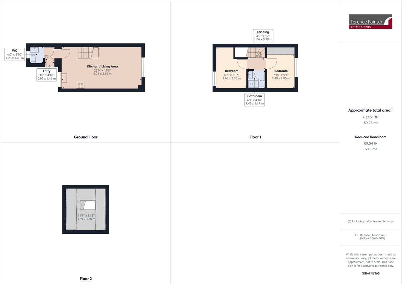 Fitted carpet. Hatch with pull down ladder leading to loft room. Doors to bedrooms and shower room/W.C.