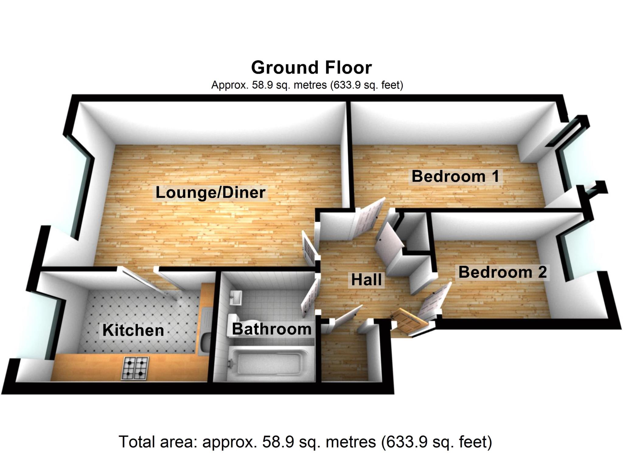 Once past the Entry Phone System, you will find a well-kept Communal Hallway leading to the property. Step inside the actual property to find good size living accommodation comprising Entrance Hall (with 2 cupboards), Bathroom, 2 good sized Bedrooms Bedroom 1 is 15 x 8 6 foot and Bedroom 2 is 10 x 7 foot, Fitted Kitchen plus a 19 6 x 12 6 foot Lounge / Diner (really good sized room).