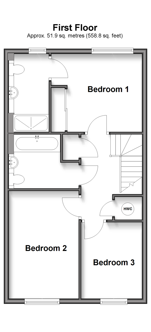 This end of terrace house is a stunning example of a home built on a new contemporary development that sits in the heart of historic Rochester High Street with high speed train station. Room sizes:Cloakroom: 7'6 x 3'0 (2.29m x 0.92m)Kitchen/Lounge/Dining Area: 17'4 x 13'2 at widest point (5.29m x 4.02m)LandingBedroom 1: 11'9 x 10'3 (3.58m x 3.13m)En-Suite Shower RoomBedroom 2: 14'0 x 9'0 (4.27m x 2.75m)Bedroom 3: 10'4 x 7'8 (3.15m x 2.34m)BathroomOff-road ParkingRear Garden