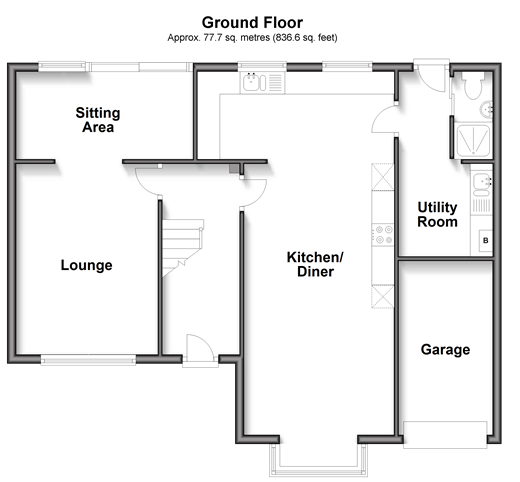 Please refer to the footnote regarding the services and appliances. Room sizes:Entrance HallKitchen/Diner: 27'2 x 11'0 (8.29m x 3.36m) plus 6'5 x 15'4 (1.96m x 4.68m)Utility Room: 14'2 x 7'3 (4.32m x 2.21m)Shower RoomLounge: 14'6 x 10'7 (4.42m x 3.23m)Sitting Area: 16'4 x 6'5 (4.98m x 1.96m)LandingBedroom 1: 14'0 x 10'4 (4.27m x 3.15m)Bedroom 2: 11'4 into bay x 11'1 (3.46m x 3.38m)Bedroom 3: 20'0 x 7'7 (6.10m x 2.31m)Bedroom 4: 8'5 x 8'1 (2.57m x 2.47m)BathroomGardens to Front & RearGarage and Parking