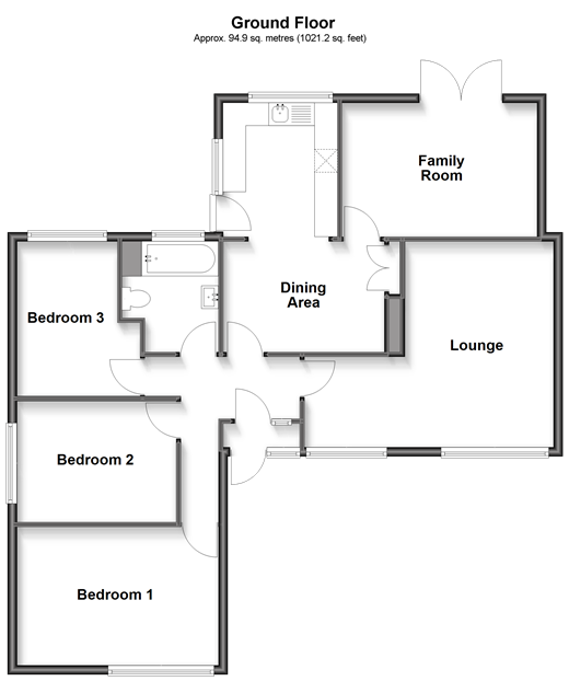 Please refer to the footnote regarding the services and appliances. Room sizes:PorchEntrance HallKitchen: 10'7 x 8'3 (3.23m x 2.52m)Dining Area: 11'4 x 7'10 (3.46m x 2.39m)Family Room: 14'0 x 9'8 (4.27m x 2.95m)Lounge: (L-shaped) 14'8 x 10'7 (4.47m x 3.23m) plus 7'3 x 6'4 (2.21m x 1.93m)Bedroom 1: 14'7 x 9'11 (4.45m x 3.02m)Bedroom 2: 11'5 x 8'6 (3.48m x 2.59m)Bedroom 3: 11'3 (3.43m) x 8'10 (2.69m) narrowing to 7'2 (2.19m)BathroomOff Road ParkingGarageFront & Rear Gardens