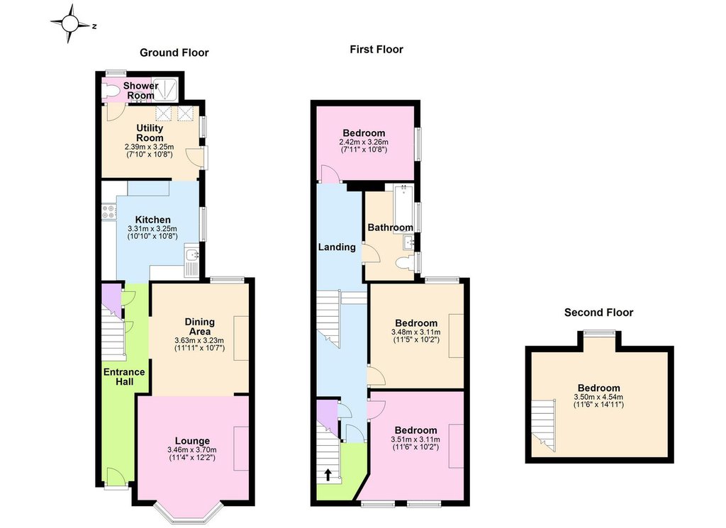 BEDROOM THREE 11'4" x 10'2" (3.46m x 3.10m) With radiator, double glazed window to rear.
