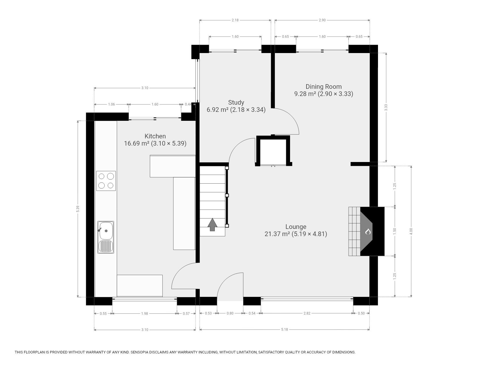 Kitchen 3.10m (10' 2') x 5.39m (17' 8')