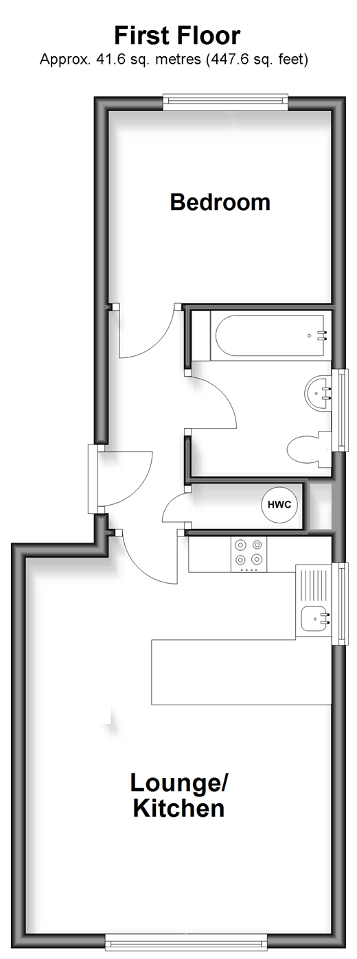 Please refer to the footnote regarding the services and appliances. Room sizes:Entrance HallwayLounge/Kitchen: 18'1 x 13'9 (5.52m x 4.19m)Bathroom: 7'6 x 6'3 (2.29m x 1.91m)Bedroom: 10'0 x 8'8 (3.05m x 2.64m)Residents Parking