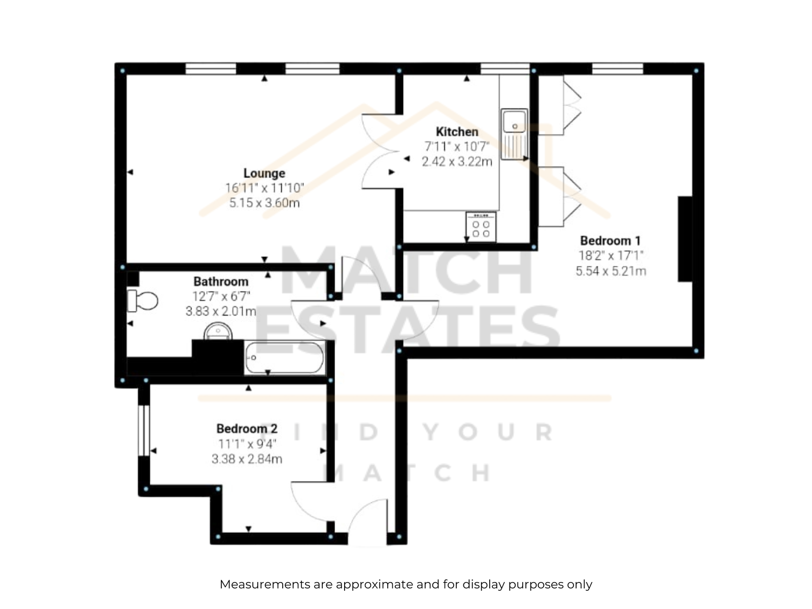 The living room flows into a good-sized kitchen, accessed via double doors, which offers ample potential for a modern makeover to suit your style.