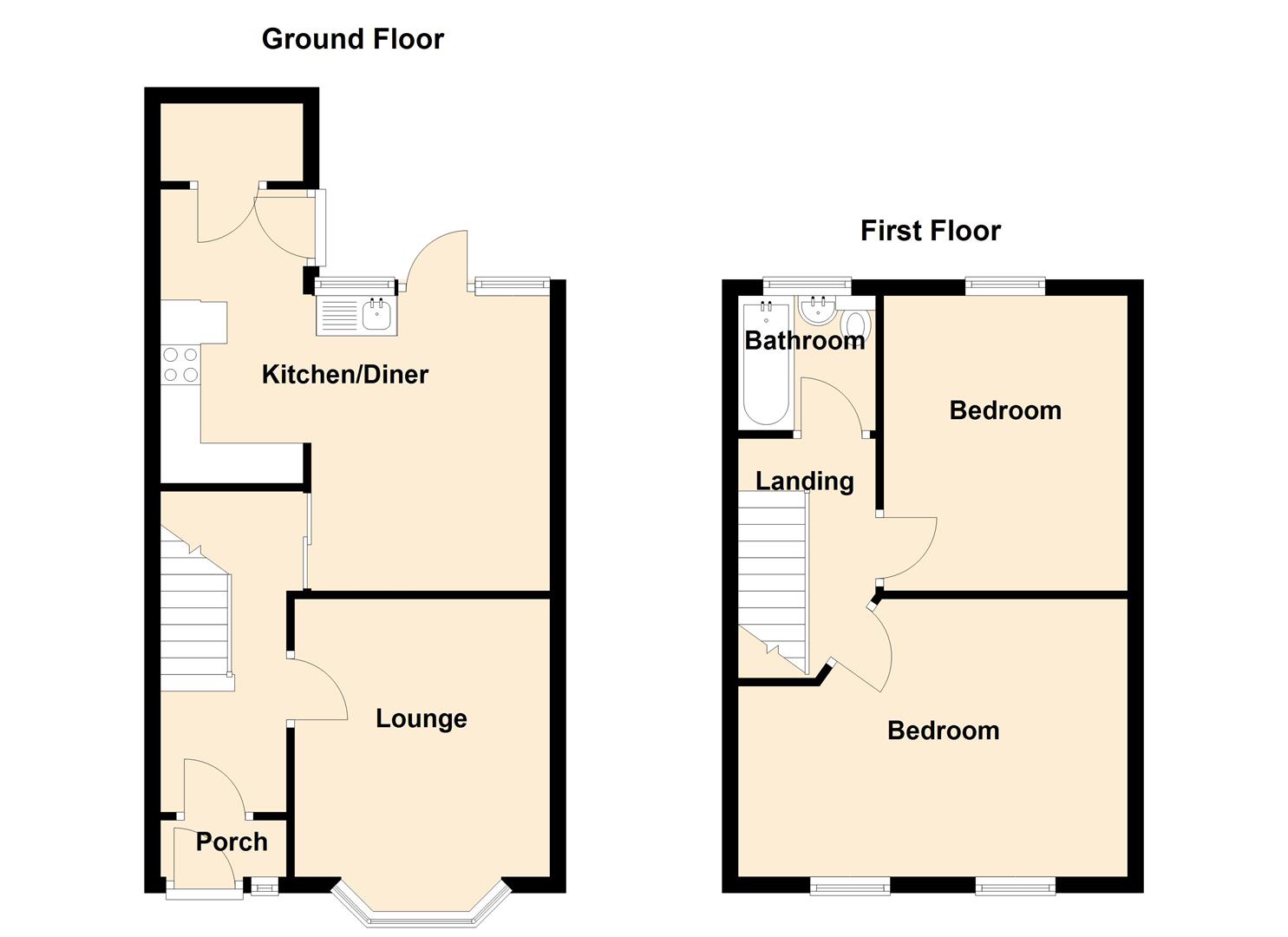 The ground floor comprises a spacious lounge, ideal for comfortable living, and a generous kitchen/diner perfect for both everyday family meals and entertaining. On the first floor, you ll find two well-proportioned double bedrooms, along with a family bathroom.