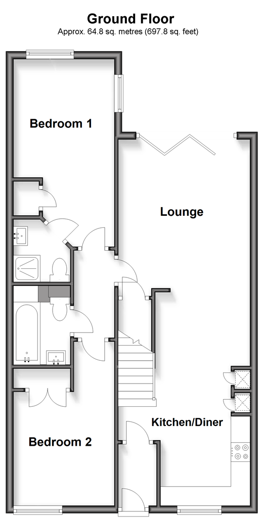 Please refer to the footnote regarding the services and appliances. Room sizes:Entrance HallKitchen/Diner/Lounge: 32'1 x 11'6 (9.79m x 3.51m)Bedroom 1: 16'0 x 8'8 (4.88m x 2.64m)En-suite Shower RoomBathroomBedroom 2: 14'5 x 8'8 (4.40m x 2.64m)Mezzanine: 25'4 x 12'3 (7.73m x 3.74m)Allocated Parking BaysRear Garden