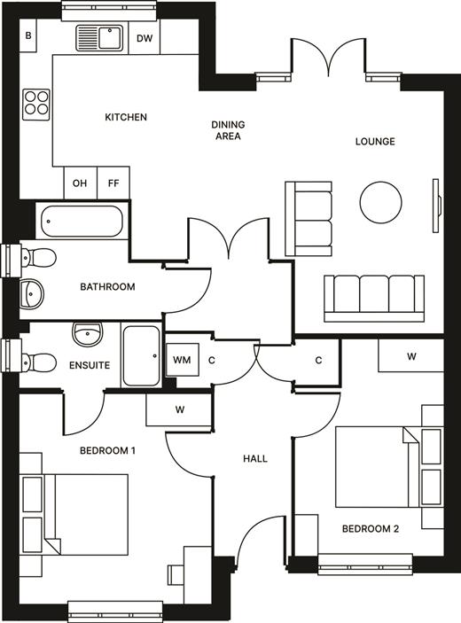 Please refer to the footnote regarding the services and appliances. Room sizes:Kitchen Area: 10'11 x 10'10 (3.33m x 3.30m)Lounge/Dining Area: 19'0 x 14'9 (5.80m x 4.50m)Bedroom 1: 12'9 x 11'7 (3.89m x 3.53m)En-suite Shower RoomBedroom 2: 13'2 x 9'0 (4.02m x 2.75m)BathroomFront GardenRear GardenAllocated Parking for 2 Cars