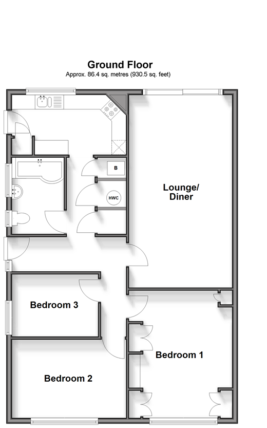 Please refer to the footnote regarding the services and appliances. Room sizes:Entrance HallLounge/Diner: 22'8 x 11'9 (6.91m x 3.58m)Kitchen: 12'11 x 6'10 (3.94m x 2.08m)Bedroom 1: 14'6 x 11'10 (4.42m x 3.61m)Bedroom 2: 12'11 x 8'6 (3.94m x 2.59m)Bedroom 3: 9'6 x 6'11 (2.90m x 2.11m)Bathroom: 8'9 x 5'10 (2.67m x 1.78m)Garage: 17'3 x 8'1 (5.26m x 2.47m)Shed: 7'5 x 5'4 (2.26m x 1.63m)DrivewayFront & Rear GardensSummer House