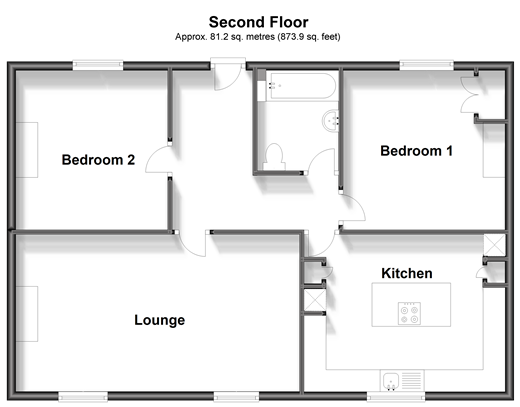 Please refer to the footnote regarding the services and appliances. Room sizes:HallwayLounge: 19'9 x 11'7 (6.02m x 3.53m)Kitchen: 14'9 x 11'8 (4.50m x 3.56m)Bedroom 1: 12'3 x 11'9 (3.74m x 3.58m)Bedroom 2: 12'0 x 11'10 (3.66m x 3.61m)Bathroom