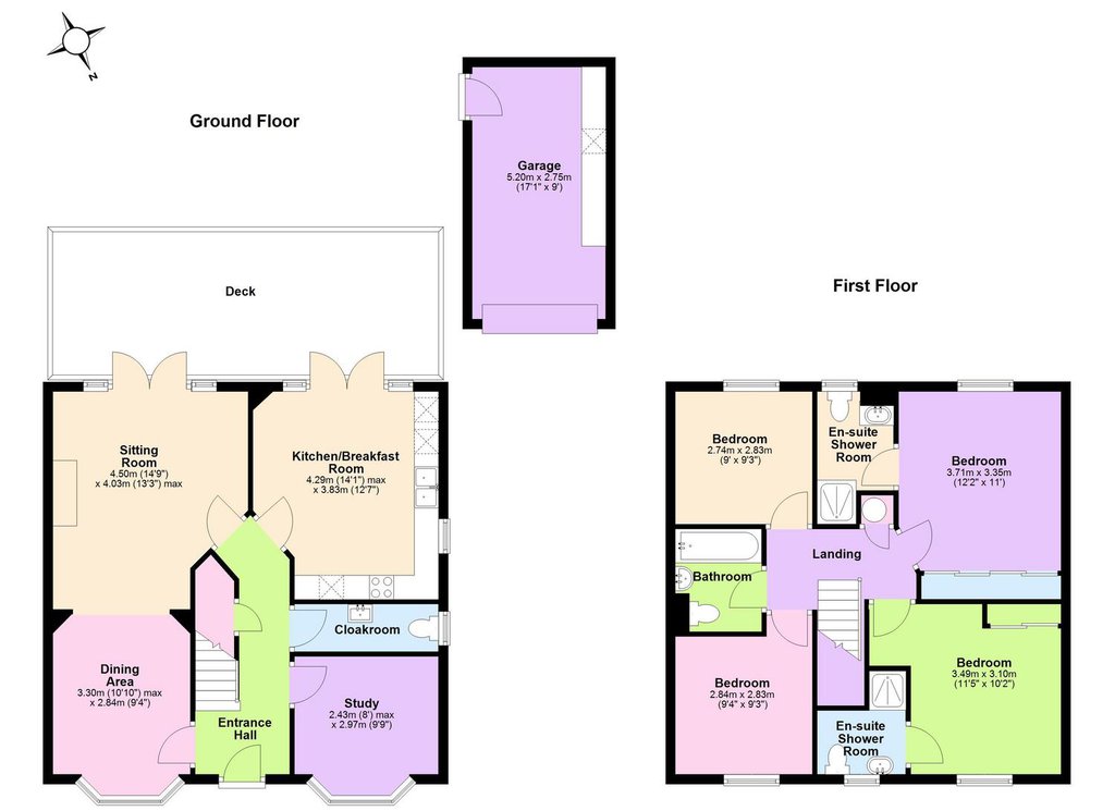 As you step inside, the generous hallway sets a welcoming tone, with the accommodation unfolding gracefully around it. To the left, a bright and airy dining room flows effortlessly into the main lounge, where double doors open onto a charming covered outdoor seating area—ideal for year-round enjoyment and al fresco dining. On the opposite side of the hallway, a sizeable study/bedroom 5 or second reception room provides a versatile space that could easily be used as a home office, playroom or snug. To the rear, the stylish kitchen/breakfast room also benefits from direct access to the garden via its own set of double doors, further enhancing the property's indoor-outdoor appeal. A convenient ground floor WC completes the downstairs layout.