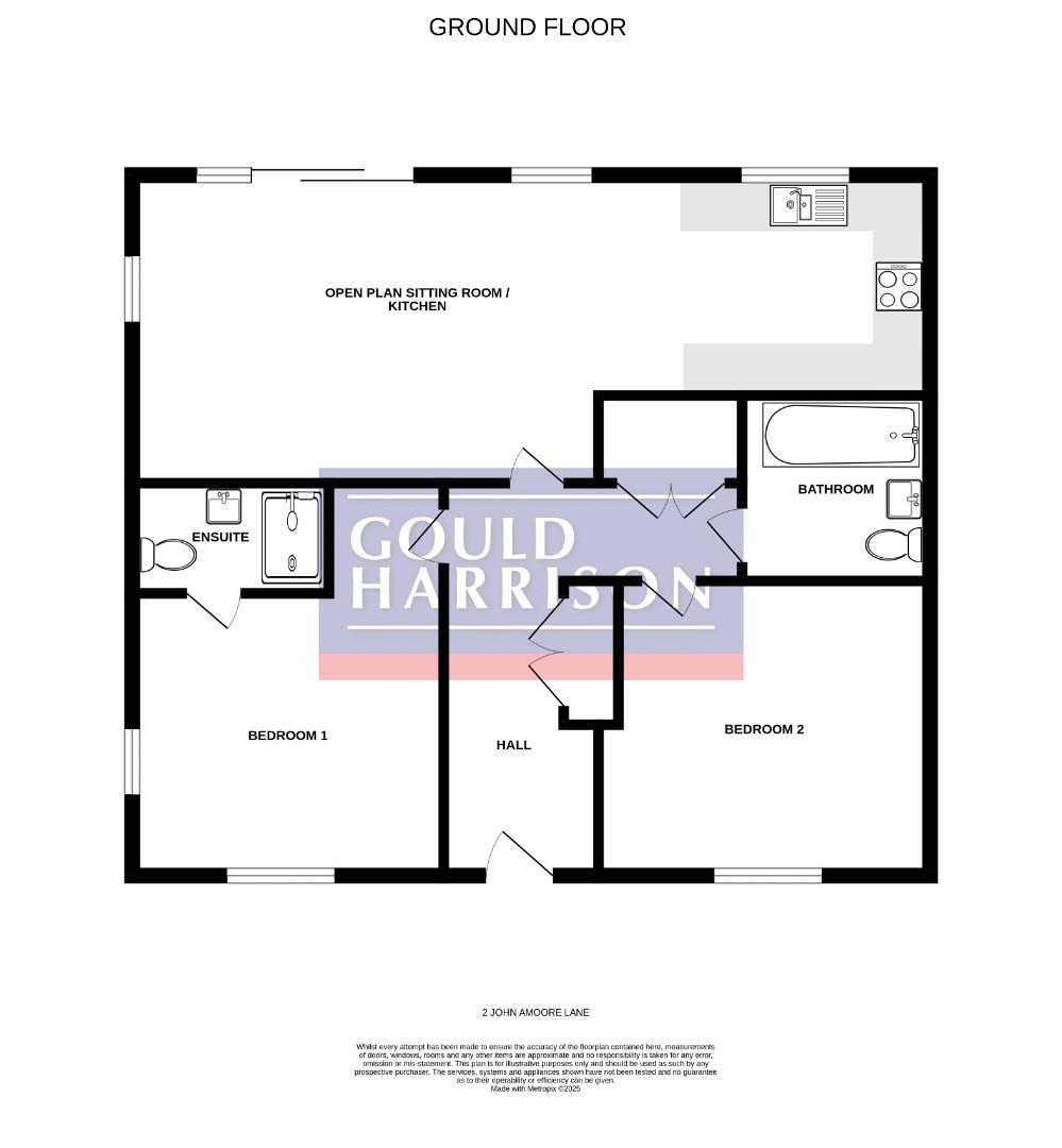 The accommodation comprises an entrance hall, open plan sitting room / kitchen, two double bedrooms, en suite shower and family bathroom/WC.