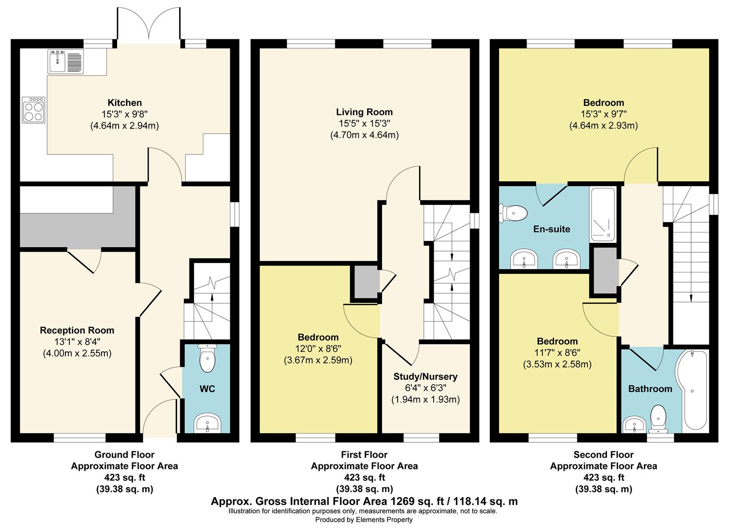 On the upper floors, you will find a spacious living room, 3 double bedrooms, one with an ensuite with his and her basins, a further smaller bedroom/study