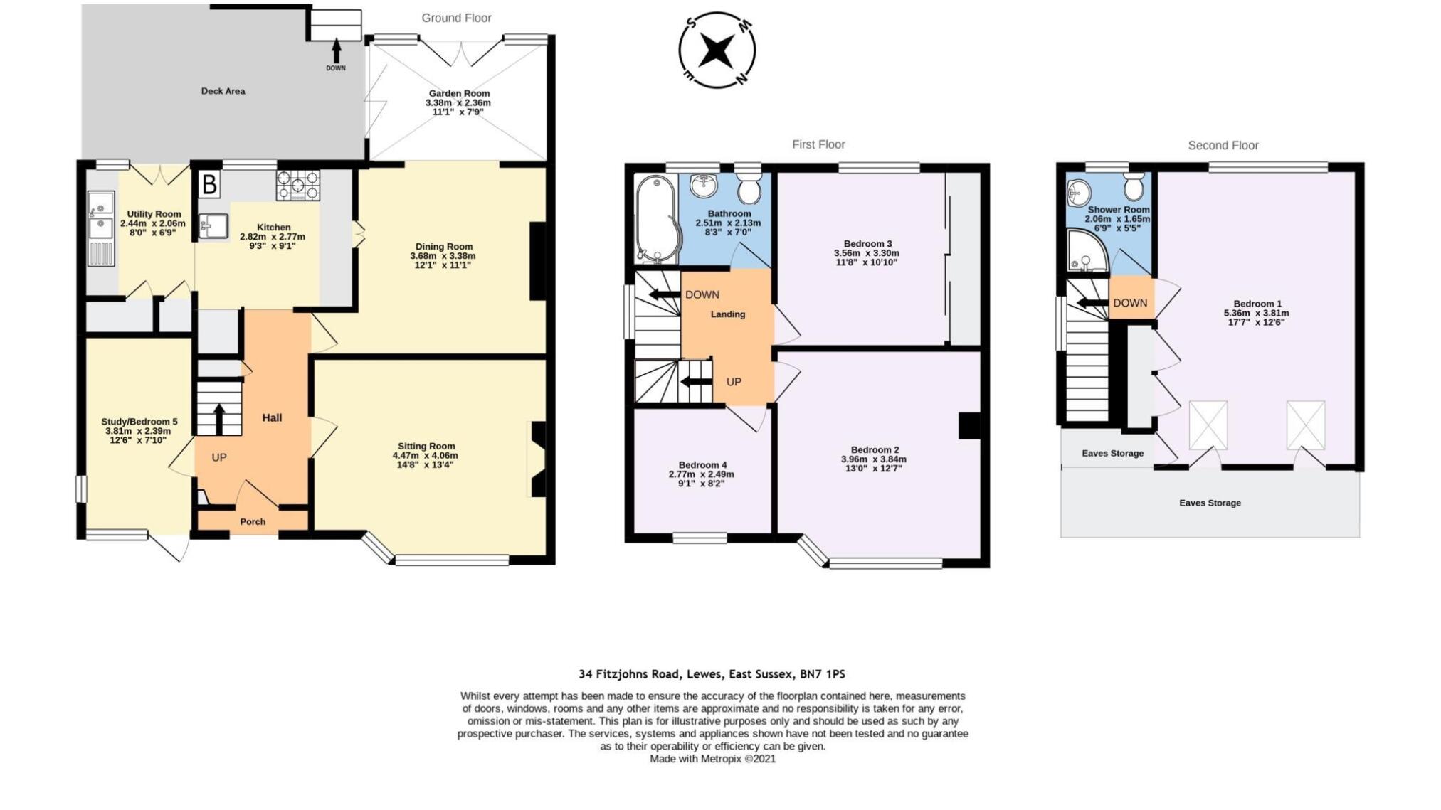 On the second floor, there is the main 17ft bedroom which has full height double glazed windows with stunning views towards the South Downs. This room also benefits from velux windows, eaves storage and a large built in wardrobe. There is also a shower room.