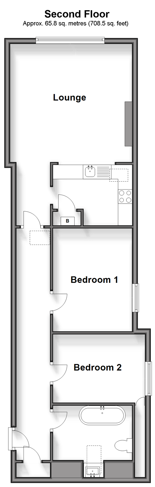 This second floor apartment is as central as you can get. Cafes, bars, restaurants and all the other wide-ranging amenities are all quite literally on your doorstep. This property is all about lifestyle and what a lifestyle it is! Room sizes:HallwayLounge: 14'0 x 13'7 (4.27m x 4.14m)Kitchen: 9'2 x 7'0 (2.80m x 2.14m)Bedroom 1: 11'9 x 7'0 (3.58m x 2.14m)Bedroom 2: 12'9 x 8'11 (3.89m x 2.72m)Bathroom