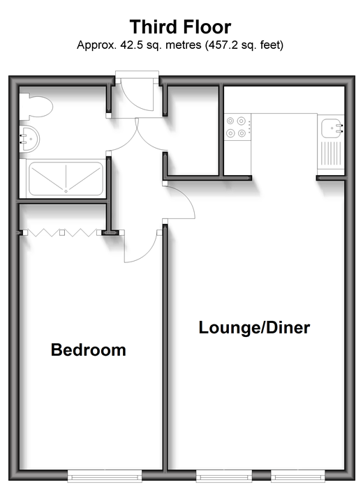 Please refer to the footnote regarding the services and appliances. Room sizes:Entrance HallwayShower Room: 6'7 x 5'4 (2.01m x 1.63m)Bedroom: 14'1 x 8'7 (4.30m x 2.62m)Lounge/Diner: 17'5 x 10'5 (5.31m x 3.18m)Kitchen: 7'2 x 5'3 (2.19m x 1.60m)