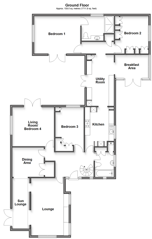 A charming detached bungalow nestled in a quiet corner plot of a no through road. This light and airy home offers space aplenty for all of the family to enjoy and has been lovingly extended and looked after by its current owners with bundles of parking. This home offers so much more than the average bungalow. Room sizes:Entrance HallwayLounge: 18'1 x 12'0 (5.52m x 3.66m)Sun Lounge: 15'9 x 5'1 (4.80m x 1.55m)Dining Area: 10'2 x 9'5 (3.10m x 2.87m)Living Room/Bedroom 4: 13'4 x 12'6 (4.07m x 3.81m)Bedroom 3: 13'11 x 9'1 (4.24m x 2.77m)Bathroom: 7'10 x 6'0 (2.39m x 1.83m)Kitchen: 10'11 x 9'1 (3.33m x 2.77m)Utility Room: 16'4 x 9'5 (4.98m x 2.87m)Breakfast Area: 10'8 x 7'11 (3.25m x 2.41m)Bedroom 2: 11'11 x 10'8 (3.63m x 3.25m)Bedroom 1: 14'9 x 11'11 (4.50m x 3.63m)En Suite Shower Room: 10'4 x 7'4 (3.15m x 2.24m)Loft Room: 27'2 x 9'8 (8.29m x 2.95m)Garage: 19'7 x 8'4 (5.97m x 2.54m)Front GardenDrivewayRear Garden