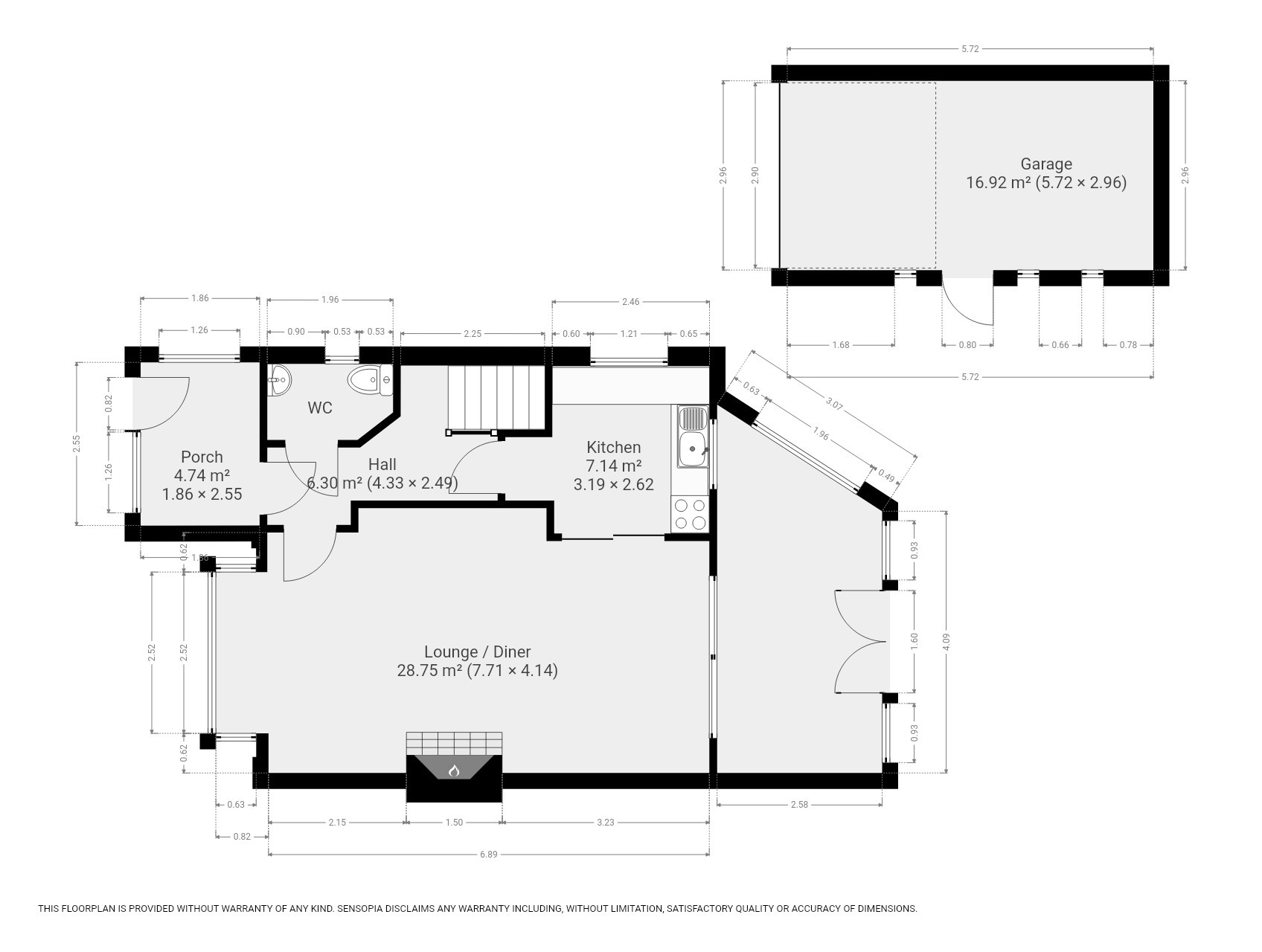 Garage 5.72m (18' 9') x 2.96m (9' 9')
