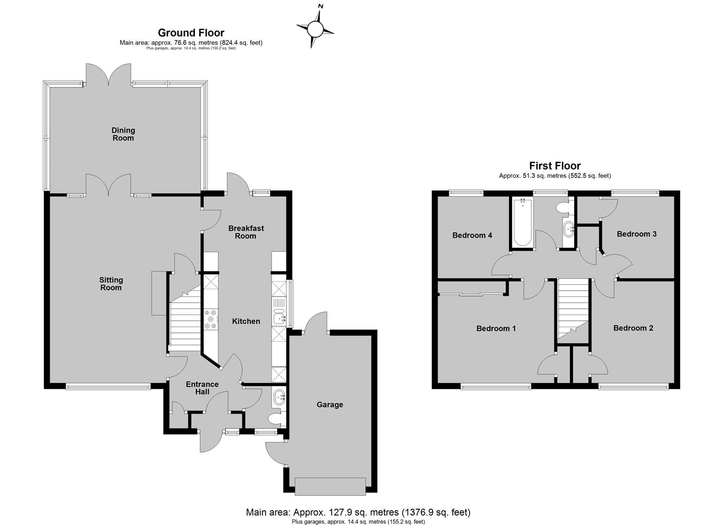 The generously proportioned accommodation totals 1376 sq ft (127.9 sq m) and is arranged on the ground floor to provide an entrance porch, entrance hall, kitchen/breakfast room, generous sitting room, a dining room and a cloakroom. The first floor comprises four double bedrooms and a well appointed bathroom.