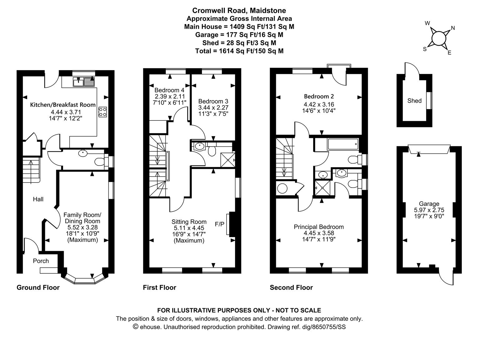 Page & Wells are delighted to bring to the market this well maintained four bedroom family home offering versatile accommodation appointed over three levels. The ground floor features a family/dining room, WC and kitchen/breakfast room. The first floor offers two bedrooms, shower room and a large sitting room. Whilst on the top floor there is a principal bedroom with en-suite shower room, further double bedroom and a family bathroom. There is a garage and allocated parking facilities to the rear and a pleasant garden. All in all, we feel this property would make an ideal family home and internal viewing is recommended. Contact: PAGE & WELLS King Street office 01622 756703