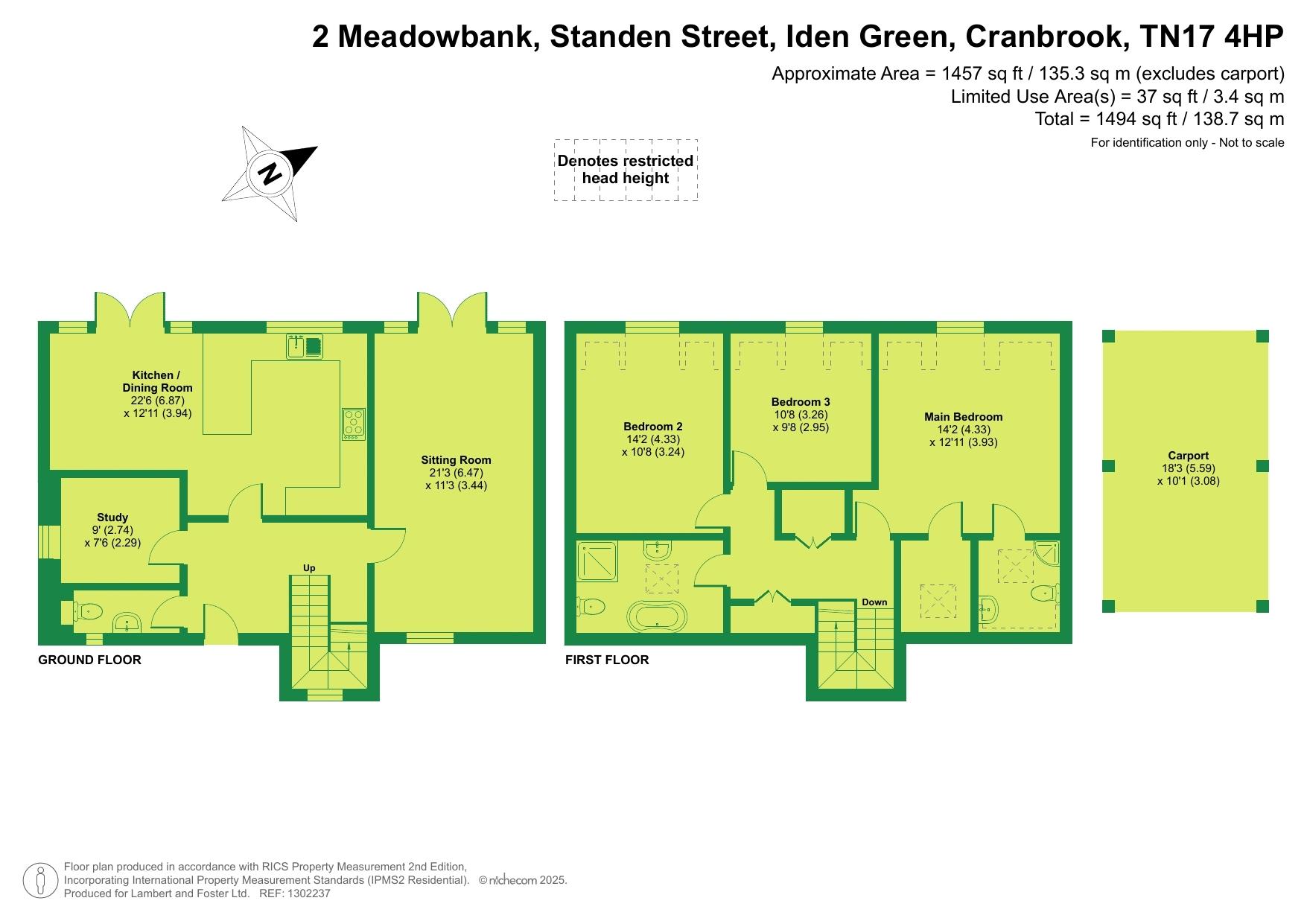 • Approximately 1494 sq ft / 138.7 sq m including solid oak carport and EV car charger
