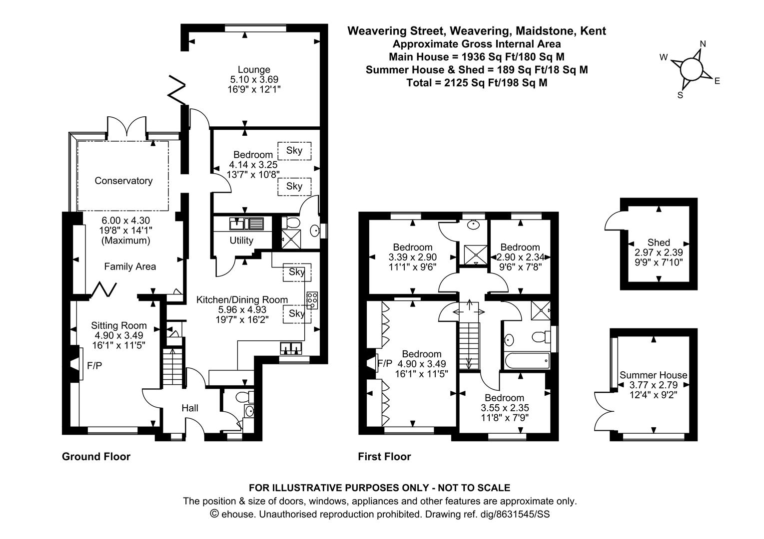 Approached via a spacious driveway for multiple vehicles, the home welcomes you into the entrance hall with convenient WC and cosy sitting room with a log burner which flows into a family area and bright conservatory, perfect for gatherings. The stunning modern kitchen/dining room features a partial vaulted ceiling and skylights, complemented by a convenient utility room. The ground floor also boasts a large double bedroom with an en-suite shower room and an additional lounge with bi-fold doors, offering versatility as an annexe. Upstairs are four more bedrooms, including a principal with built-in wardrobes and a second double with an en-suite, alongside two further bedrooms sharing a contemporary family bathroom.