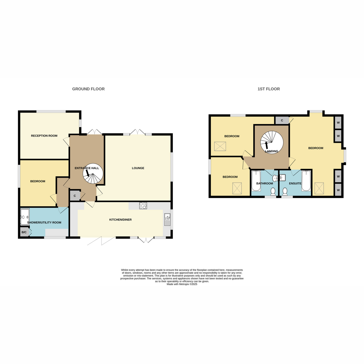 tiled floor, part tiled walls, shower cubical, low level flush w.c, space for washing machine, cupboard housing boiler, double glazed window to rear