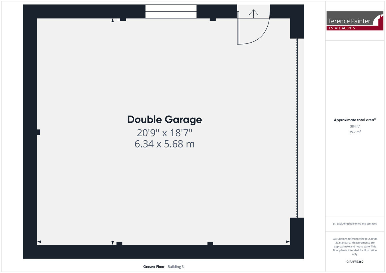 6.34m x 5.68m (20' 10" x 18' 8") There is a metal up and over door to the front, glazed UPVC door to the side, lighting and power points. To the front of the garage is parking for up to six cars.