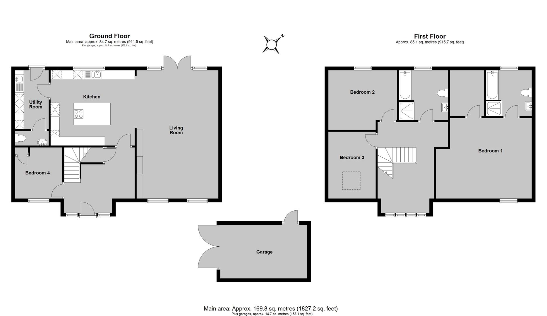 This exceptional home provides approximately 1827 sq ft (169 sq m) of spacious and versatile accommodation, arranged on the ground floor to provide a generous entrance hall, a living room open plan to a contemporary kitchen, a utility room, a double bedroom, and a cloakroom. The first floor comprises three further double bedrooms and two smartly fitted bathrooms, including an en-suite bathroom to the principal bedroom.