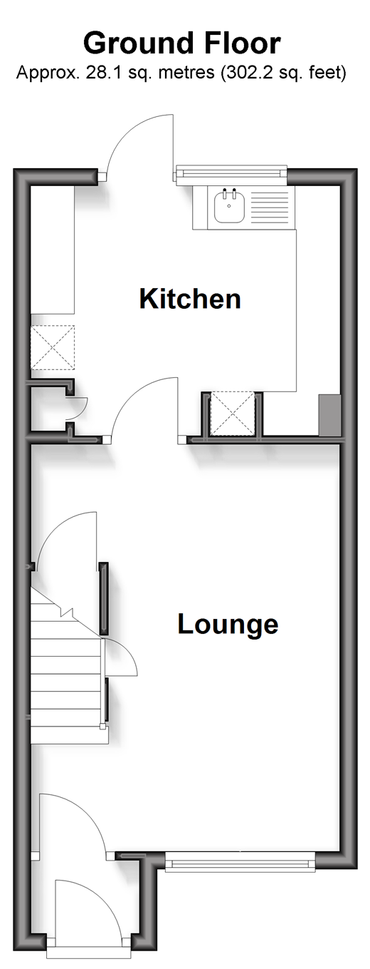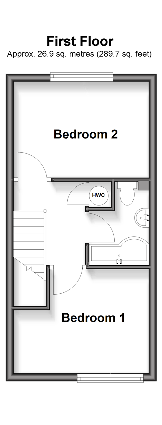 Please refer to the footnote regarding the services and appliances. Room sizes:Entrance PorchLounge: 15'3 x 11'6 (4.65m x 3.51m)Kitchen: 11'5 x 9'2 (3.48m x 2.80m)LandingBedroom 1: 11'6 x 8'2 (3.51m x 2.49m)Bedroom 2: 9'0 x 8'5 (2.75m x 2.57m)Bathroom: 7'1 x 4'7 (2.16m x 1.40m)Front GardenRear GardenGarage En Bloc