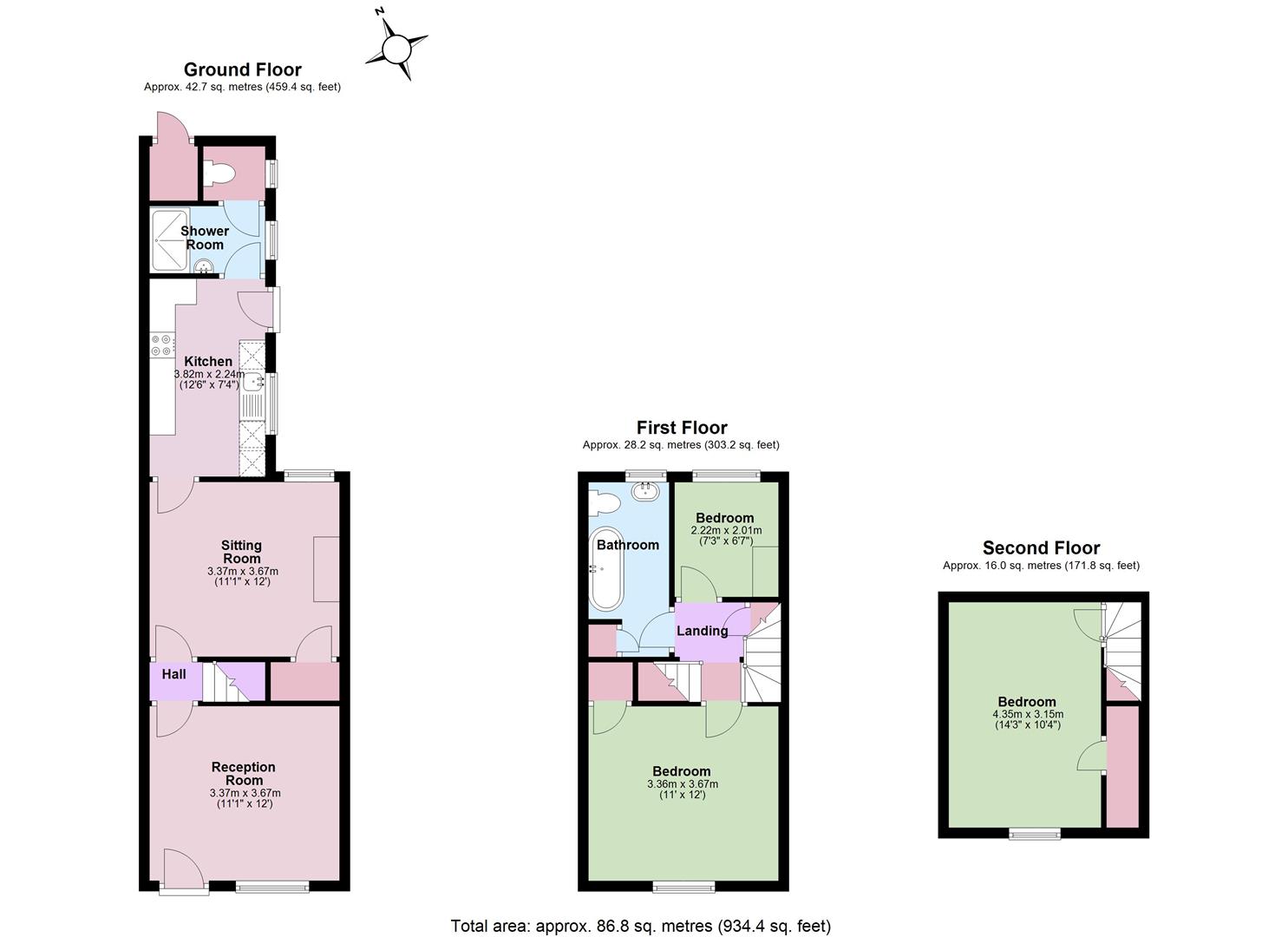 The charming accommodation comprises separate dining room, sitting room with feature open brick fireplace adding character and warmth, well fitted galley-style kitchen and 3 bedrooms, one double and one single on the first floor with a quirky wooden staircase leading to a double bedroom which occupies the entire top floor. Conveniently, there are two washroom facilities, a ground floor shower room and upstairs bathroom.