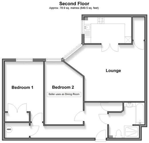Please refer to the footnote regarding the services and appliances. Room sizes:HallwayLounge: 18'6 x 14'2 (5.64m x 4.32m)Kitchen: 10'10 x 6'8 (3.30m x 2.03m)Bedroom 1: 15'3 x 9'8 (4.65m x 2.95m)Bedroom 2 used as dining roomBathroom: 9'5 x 8'11 (2.87m x 2.72m)Store Room: 5'10 x 3'11 (1.78m x 1.19m)Communal Garden