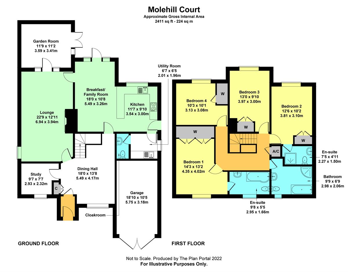 The spacious 22ft sitting room benefits from a log burning stove and access to a recently built garden room which enjoys lovely garden views, the breakfast/family room opens to the quality fitted kitchen forming the hub of the house, both looking over the rear garden. In addition to the ground floor are a study, modern fitted utility room and cloakroom.