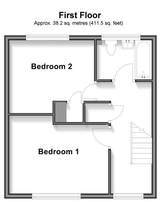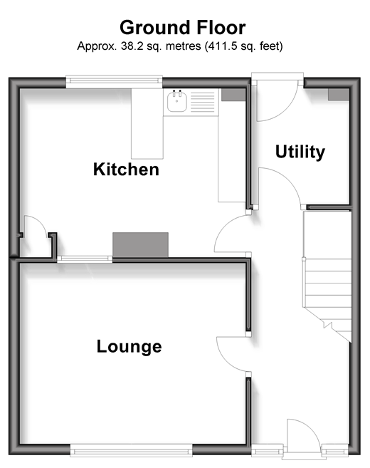 Please refer to the footnote regarding the services and appliances. Room sizes:Entrance HallLounge: 13'4 x 10'8 (4.07m x 3.25m)Kitchen: 13'4 x 9'9 (4.07m x 2.97m)Utility Area: 6'9 x 5'6 (2.06m x 1.68m)LandingBedroom 1: 13'4 x 11'8 (4.07m x 3.56m)Bedroom 2: 11'7 x 9'8 (3.53m x 2.95m)BathroomDriveway to FrontGarden to Rear